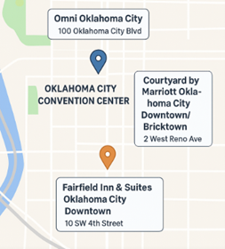 All INACSL sessions and events will be held at the Oklahoma City Convention Center (OKCC). Hotel and TravelRoom blocks have been reserved for INACSL26 participants at the Omni Oklahoma City, Courtyard by Marriott Oklahoma City, and Fairfield Inn & Suites Oklahoma City. All rooms are available on a first-come, first-served basis. Rooms are available until Friday, May 8, 2026, or whenever the rooms sell out – whichever occurs first. Omni Oklahoma City100 Oklahoma City Blvd, Oklahoma City, OK 73109; (405) 438-6500 Why attendees love it: